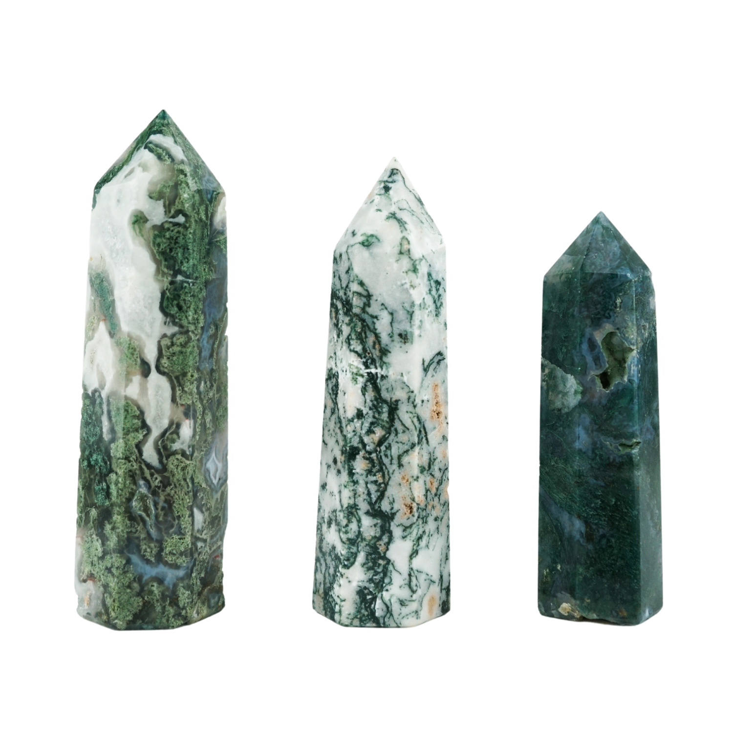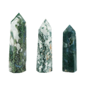 Due to the nature of this crystal, all of these Moss Agate crystal points will differ slightly in color, size, shape and pattern.