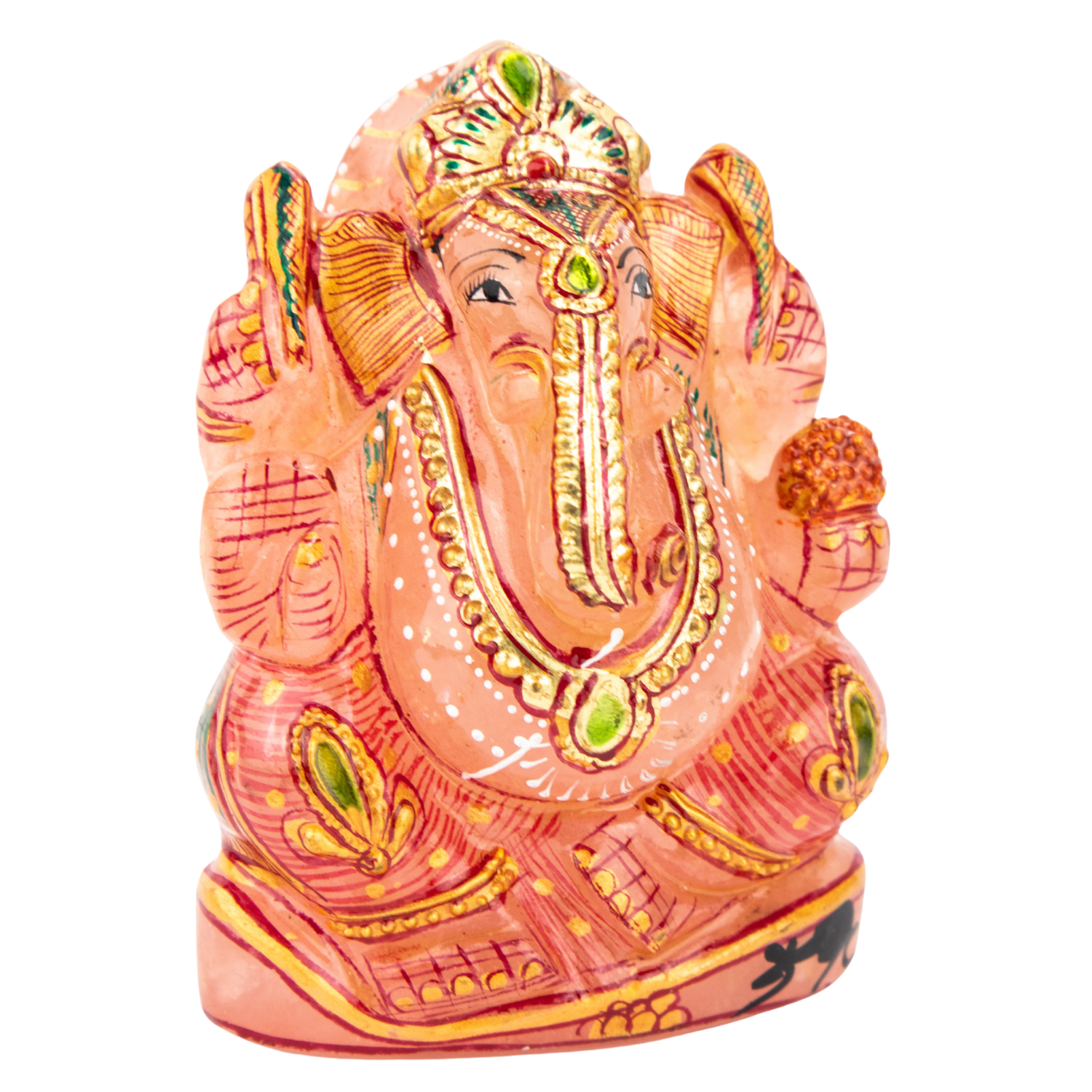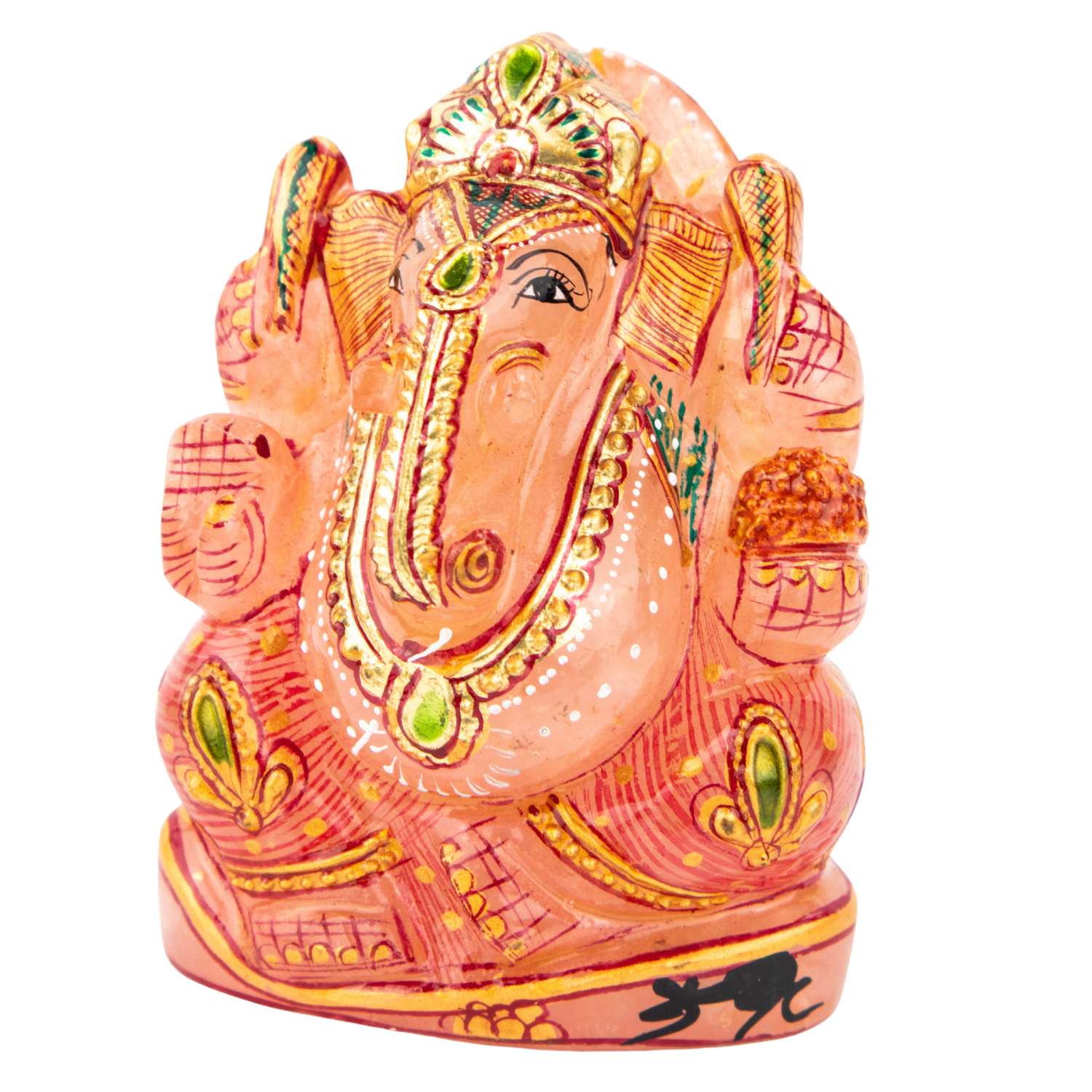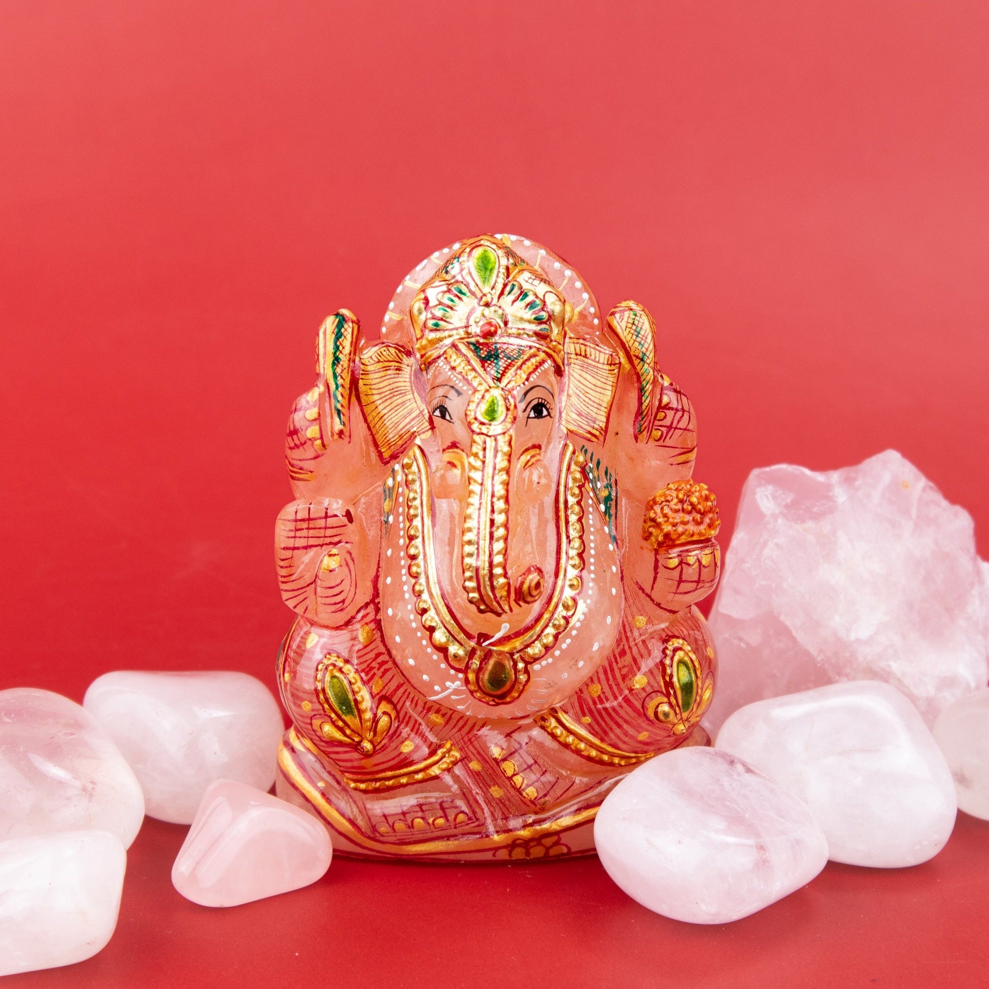 The presence of Ganesh is a loving one that reminds us of his existence within us all. We see this exhibited in his name, as Gan means “group,” meaning that his energy ties all energies together in a divine order. When connecting to the loving energy of this statue, unite with this philosophy of universal bonds. Remember that you are meant to be a part of this world, this group, and all the living things in it. Rose Quartz will assist in the attraction of bonds, as its energy is rooted in abundance and connection. It links to the heart so that you are open to receiving and giving all manners of love. The compassion that Rose Quartz elevates will help you in the pursuit of all love, whether it be romantic, for yourself or for the immense group you interact with everyday when you reenter the world. The rat, on which the elephant god travels and which can be seen depicted on the back of the statue, reminds us that as we move in this world, we should keep our primal, lower self beneath our will power and wise self. Ganesh is above the compulsive greed of the rat, which would eat whatever it could if it were not under the control of Ganesh. Invoke this power over your own impulsive urges, and you can devote yourself to a more enlightened quest.