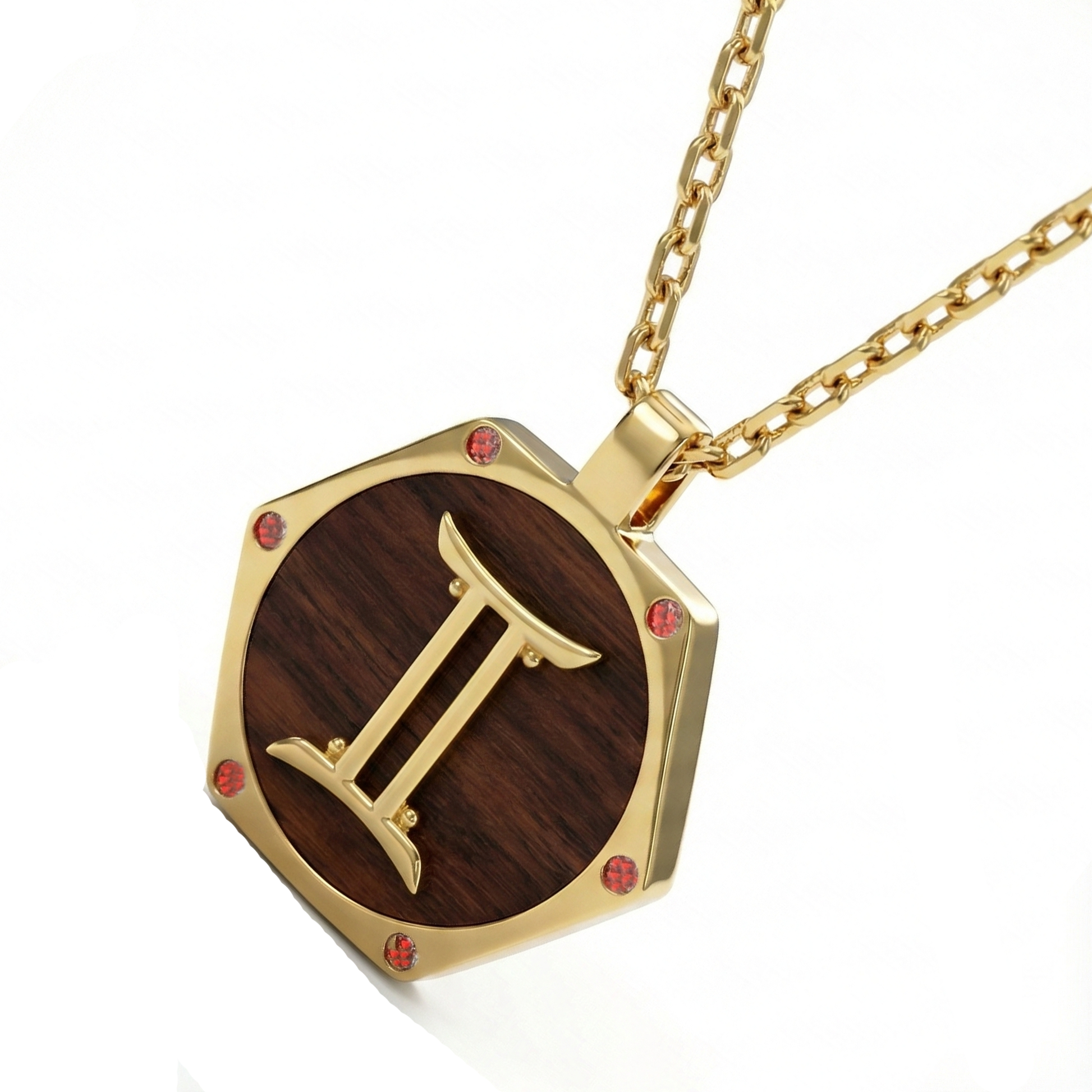 The Gemini Communicator Hexagon Talisman | Solid Raw Brass & American Black Walnut| Red Agate (Focus & Balance)